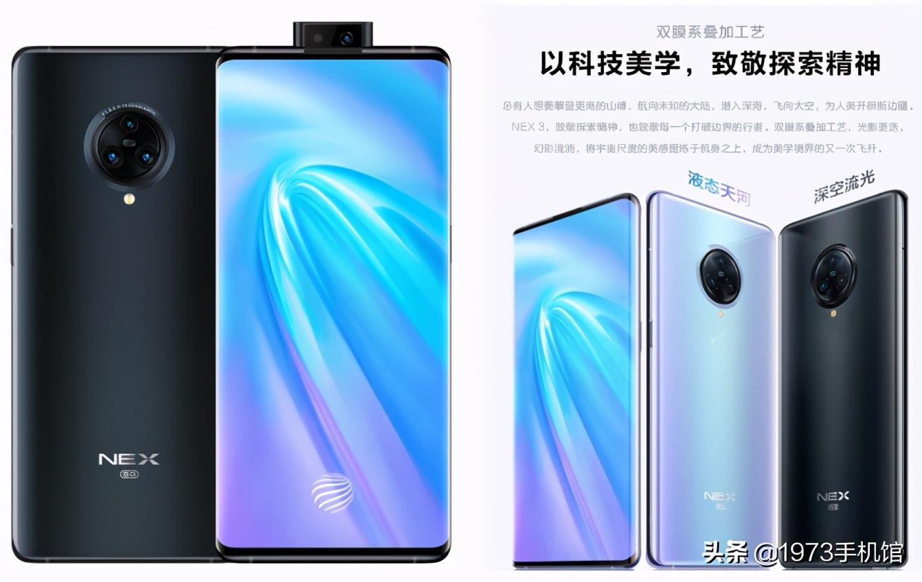 2019年9月16日,vivo NEX3发布,6.89英寸的无界瀑布屏,为了达到正面的视觉一体,使用了隐藏式压感键,唯一的不足就是9.4mm的厚度和218g的重量。