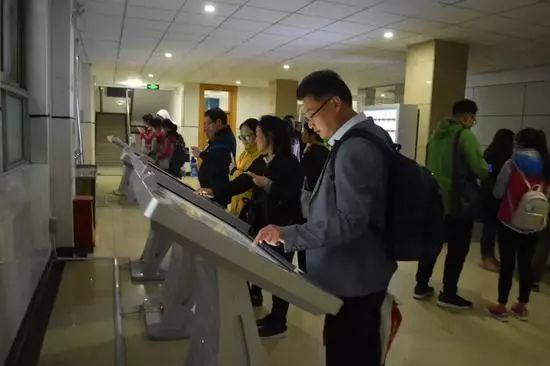 教学楼的楼道里,摆放的智能设备上,存放着相对应的班级信息。