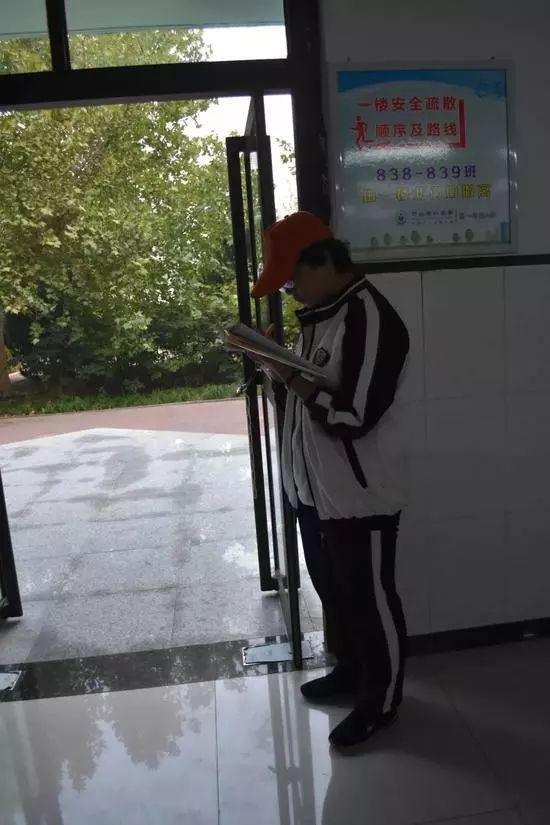 衡中此次接待日的学生志愿者,趁空闲时间写作业。