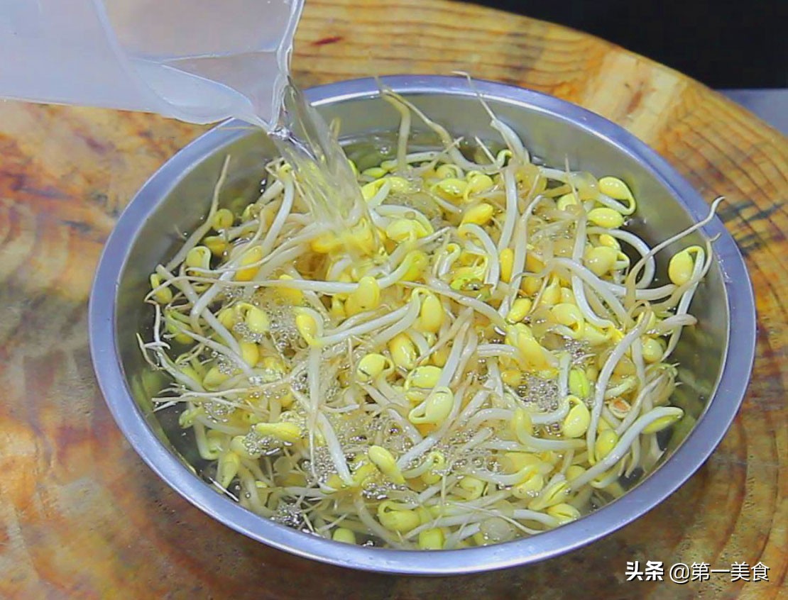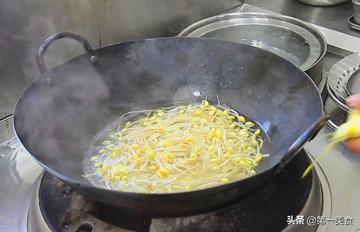 就可以倒出豆腐皮和黄豆芽,垫在盘底。