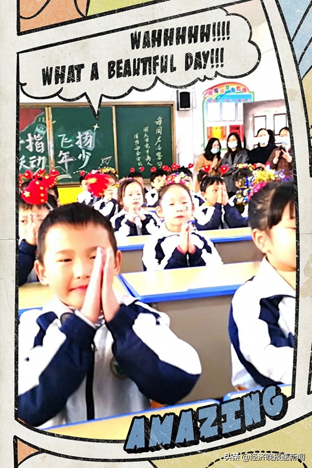 快乐动手,童心向党,课间师生们共同在快乐的气氛中体验着指尖的乐趣。