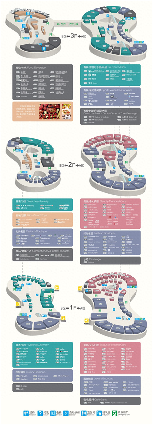 三亚国际免税城内部品牌分布: