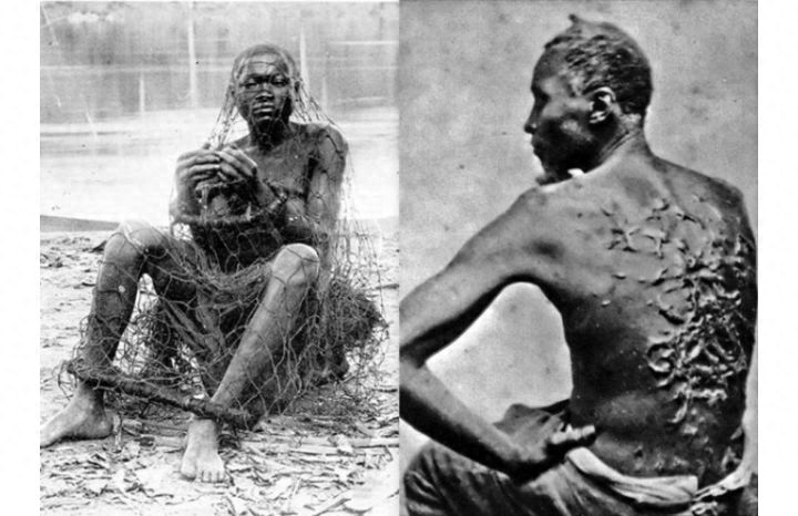 奴役的黑人(右) / 背上被鞭笞的疤痕(左)