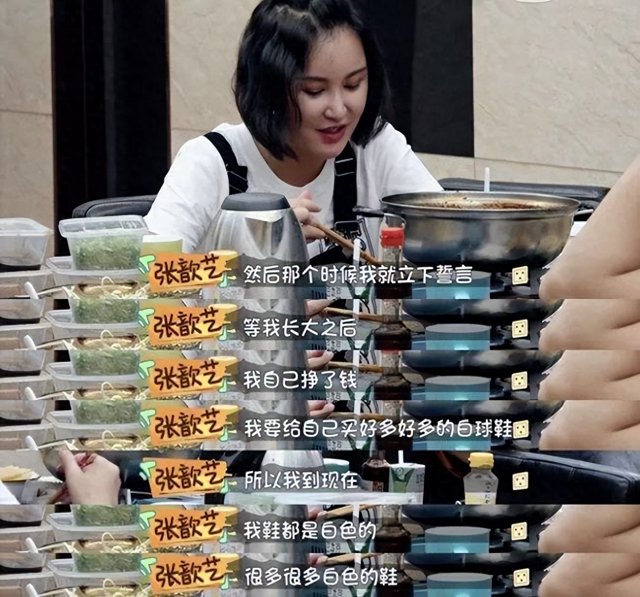 而在《妻子的浪漫旅行》中,张歆艺在节目中哽咽: