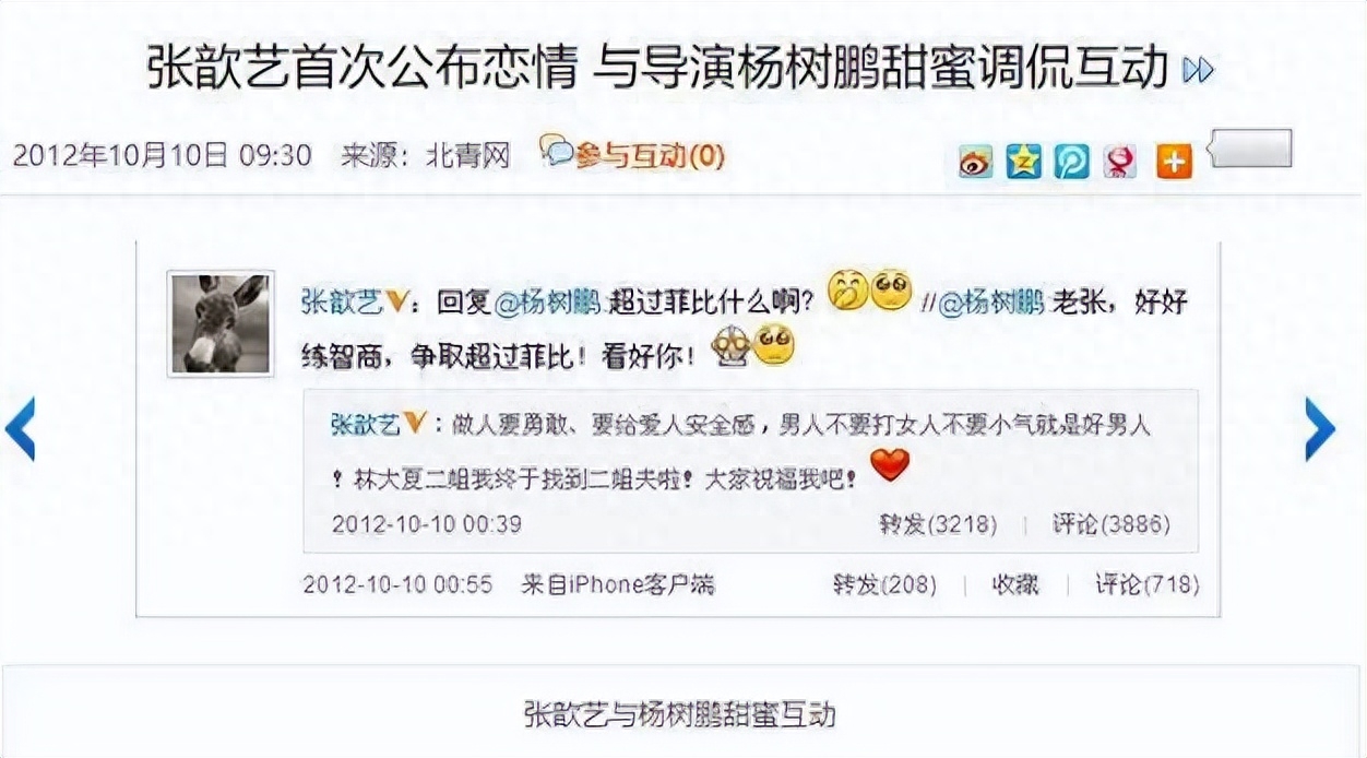 早在2010年,张歆艺就与杨树鹏相识。