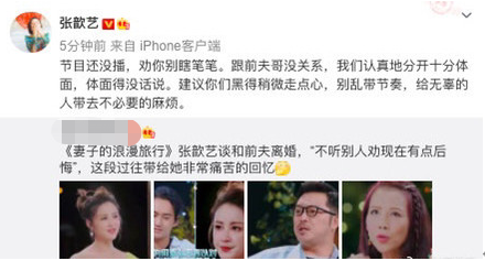 因为彼时的访谈与张歆艺登上的夫妻综艺有关,张歆艺成了网友眼中“表面前夫哥、背后后悔过”这样表里不一的人。