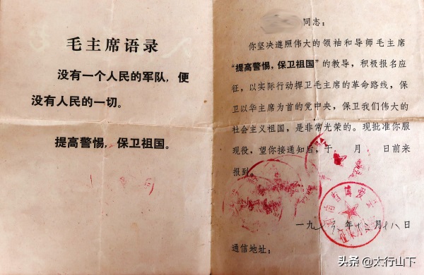 当年我们入伍的通知书