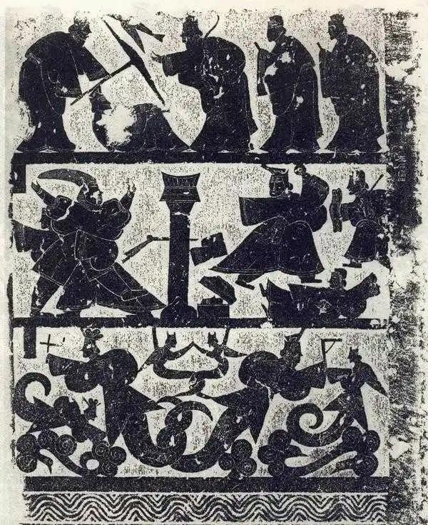 上图是在山东嘉祥的武梁祠出土的东汉时期的石刻画像,画像当中伏羲(右)手拿“巨”和女娲手拿“规”的形象非常明显。