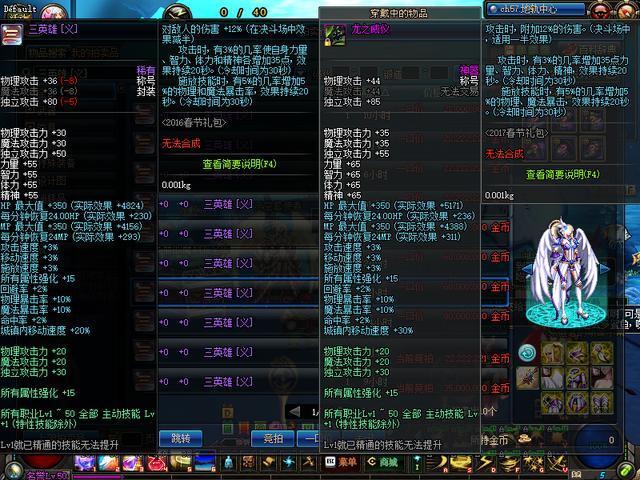 从数值上来看两者是一样的,但是三英雄【义】和龙之威仪附加的效果种类不同,三英雄【义】为黄字(伤害增加)最终效果取最高值,所以如果身上的装备已经有黄字的情况下会有冲突,其中效果较低的一项会没有装备效果,龙之威仪为白字伤害,是可以叠加没有冲突,但是白字在叠加的时候会有一定的递减。增加的基础属性方面差距不大就不做相应的分析比较了。