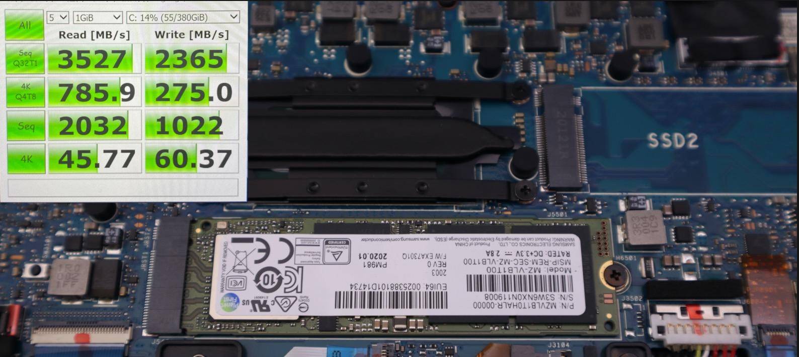 硬盘是三星的PM981,跑分成绩如图,这次居然不是660P还挺让人意外的。