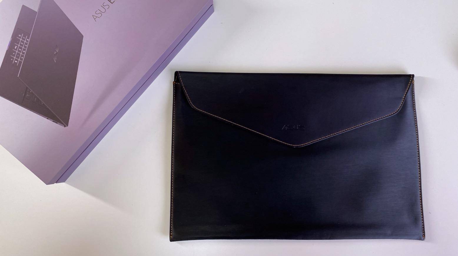 顺便再说下,毕竟是高端轻薄本,它的包装盒很好看,还随机附赠了这样的一个很有质感的内胆包。