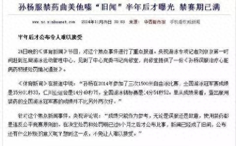 而发布该消息时,孙杨的禁赛期早已于当年8月16日结束。