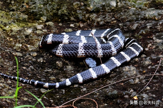 银环蛇身上的花纹呈黑白相间的图案,在白天当中或许十分的显眼,但是一旦到了晚上就变得十分难以发觉,特别是晚上的银环蛇变得更加的活跃,从而更加的容易发生银环蛇咬人的事件。