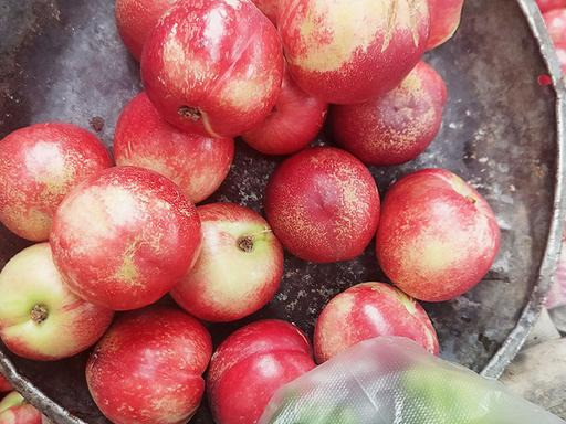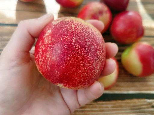 3、表皮上有那种自然裂开的褐色缝隙,甚至渗出桃油的油桃,虽然长得丑一点,其实味道并不赖,这种果子基本上都很甜。