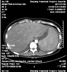 患者,女性,47岁,因“发热伴腹胀1月余”于2017-01-06入院。患者1月前感冒后自觉畏寒发热(体温未测),自服左氧氟沙星及中药(具体不详)后出现轻度腹胀,伴纳差、盗汗,遂于2016-11-28就诊于外院,查肝功能提示ALT 60U/L,AST 86U/L,ALP 182U/L,TBIL 9.4μmol/L,未予重视,未行诊治。