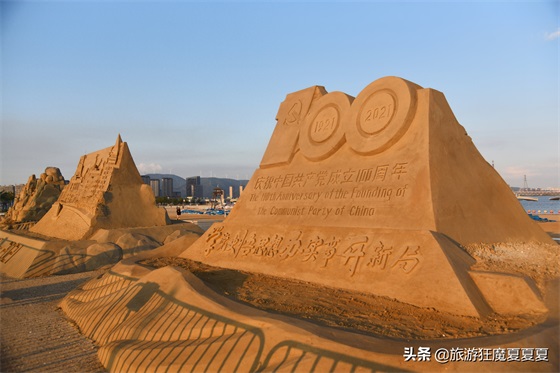 虽然不能游玩水上项目有点遗憾,但是这段时间也有精美的沙雕展,同样不容错过,沙雕主题包括庆祝中国共产党成立100周年、展现当地生活的活力南湾等等,大多都与当地生活或者红色文化相关,喜庆而又有烟火气,不知道下雨了是不是就没有了,需要赶快前去看看。