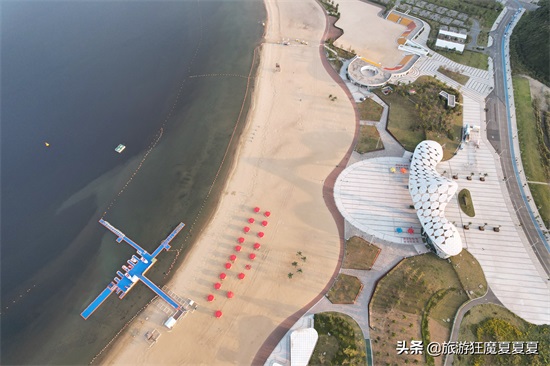 据说才开业的时候梅山湾的沙滩只有700米,不过现在已经远远不止这个距离,不仅海岸线长度从试运营时的700米增加到1880米,加了两倍不止,而且景区内整个月牙形沙滩面积也32万平方米,让大部分人都能尽情享受沙滩度假而不会觉得拥挤。此外沙滩平面还被分为广场区、公共游乐区、水上娱乐区及沙滩排球场区域等多个功能区划,在让游客更加方便快捷的同时,也突出梅山湾滨海运动休闲主题。