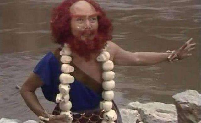 在原著第二十二回,沙僧在流沙河的初初亮相可没有后来那么"普通",他出场时,一头红绿的头发,脖子上挂着一串由9颗骷髅头穿起来的项链,看着就凶神恶煞。