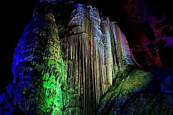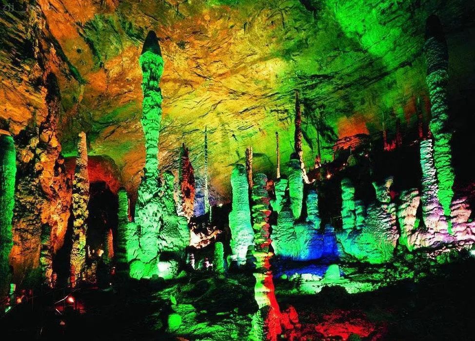 洞中有数量众多的石笋、石柱等各种乳石,包括高达20米的“定海神针”。