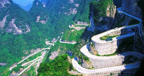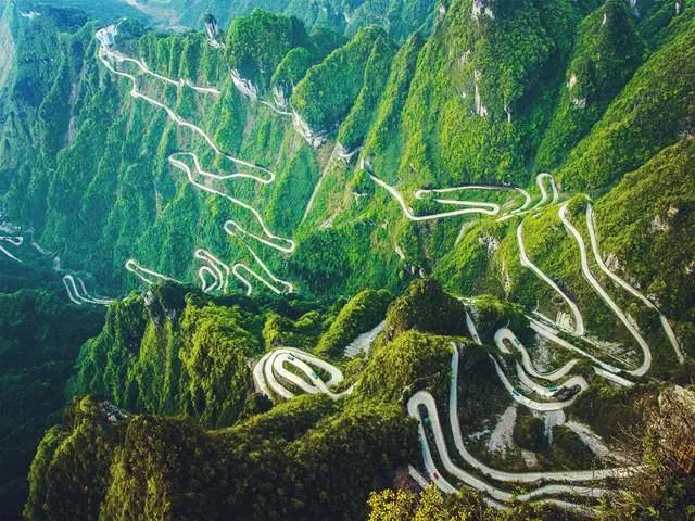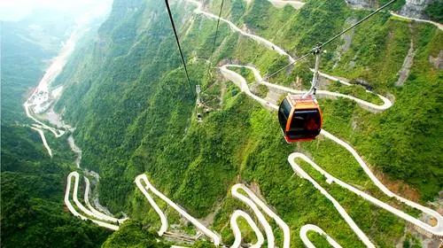 7500米的观光索道,180度转弯的通天大道,还有贴壁悬空的玻璃栈道。