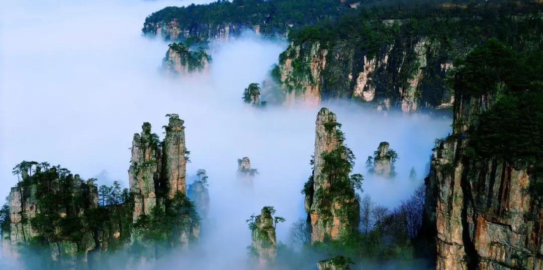 《阿凡达》中“哈利路亚山”的取景地,群峰环抱,经常云雾缭绕。