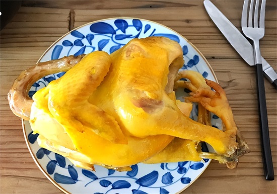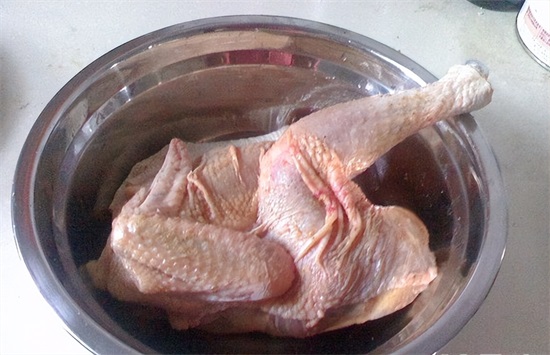 1、新鲜活鸡可以让鸡贩帮忙宰杀处理干净,拿回家后清洗干净血水,剁掉鸡头和鸡脚。然后在鸡的全身抹上食盐、生抽,在鸡肚子里放上几片生姜、葱段和几粒花椒,腌制5个小时左右。