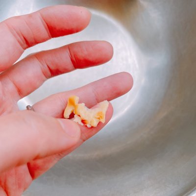 8、【重点】蒸到什么程度 用大拇指和小拇指夹住,不用力也能捏碎。这是必须的! 放心,做完的纳豆硬度刚刚好,发酵可以把豆子变得紧绷绷 我猜的啊,可能大部分朋友这里没有做到,影响最后口感。