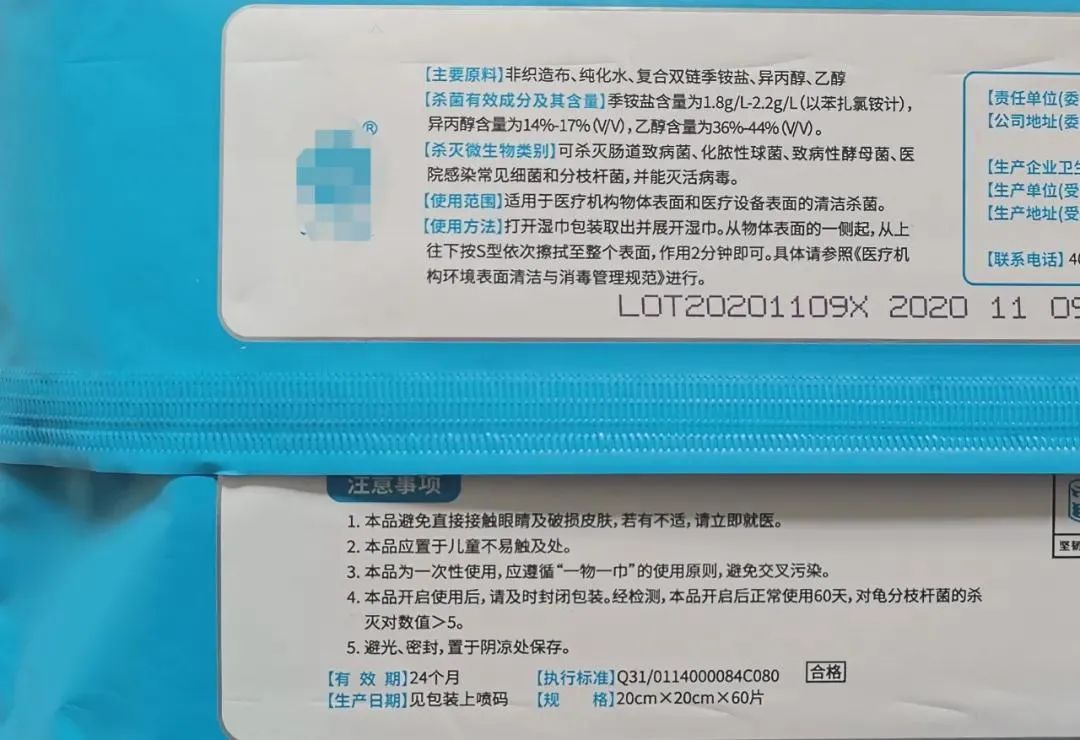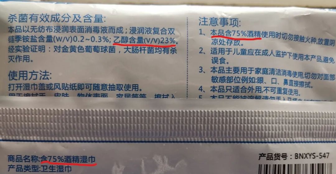 目前由于我国尚未将消毒湿巾列入《消毒产品分类目录》,消毒湿巾不能按消毒产品进行监管,不能办理消毒产品的卫生许可证,也就不能标注消证字号。有些企业将75%酒精湿巾按卫生湿巾上市销售,标签标注内容又普遍存在违规现象,国家《消毒产品标签说明书管理规范》明确规定,卫生湿巾产品禁止标注消毒、灭菌、除菌、高效、无毒、预防、治疗疾病等内容。