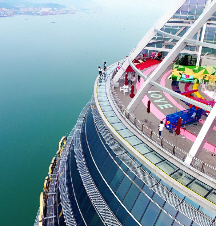在大厦的55-58层,有个云上厦门观光厅,1300多平方米的360度透明观景平台,在天气好的情况下,可以在户外俯视厦门,海天漫步,是一处绝佳拍照打卡胜地。