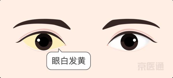 淡黄色的眼白,通常是由血液中胆红素积聚引起的黄疸的征兆,也称「巩膜黄疸」。