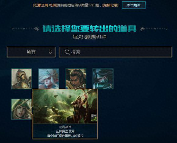 而配合现在的一个海克斯战利品转移的活动,就可以把小号里的丛林侠盗艾希转移到大号里了。