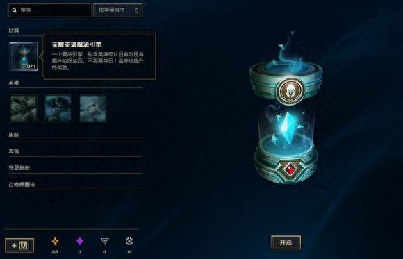现在英雄联盟账号升级精彩会有奖励,网友发现在升到10级时送的魔法引擎里,有很大几率开到丛林侠盗艾希的碎片。