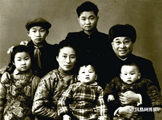 陈赓“全家福”,前排左起:知进、傅涯、知庶、陈赓、知涯。后排左起:知建、知非