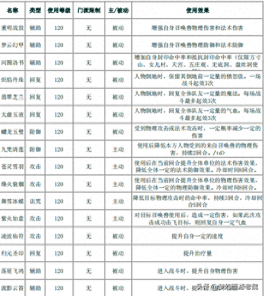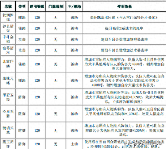 法宝分1-4级,攻击、防御、恢复、诅咒、辅助五大类,对应五种最优五行会有属性加成。法宝有主动和被动两种,主动法宝需要在战斗中消耗1回合操作使用,简单任务中不适用,下面我们主要分析下被动法宝吧!
