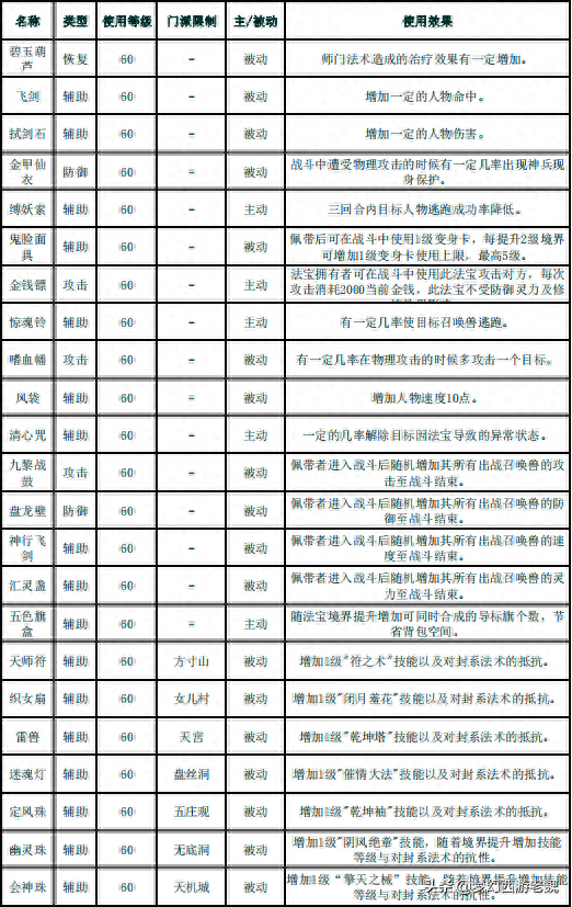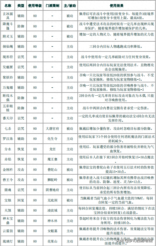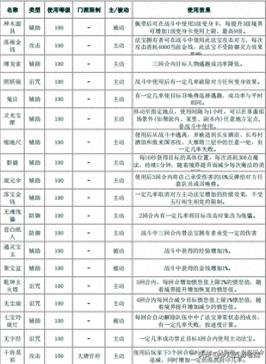 梦幻西游:108种法宝功能大全!有套法宝搭配永远不用补灵气