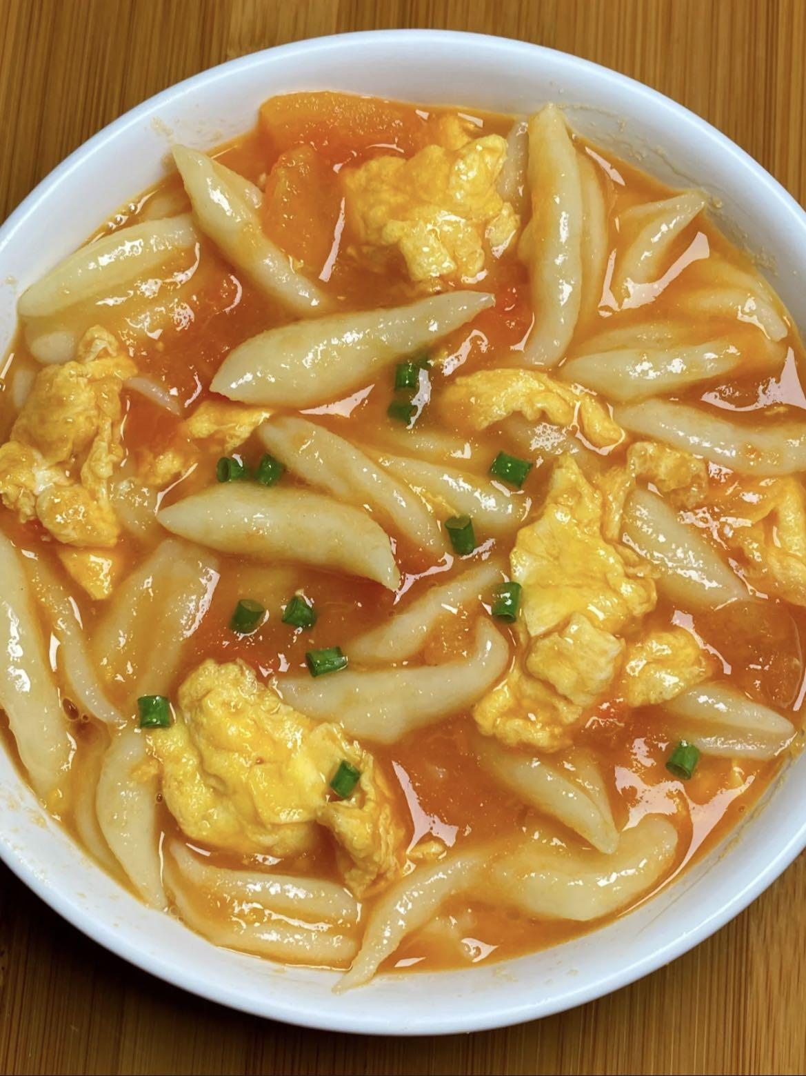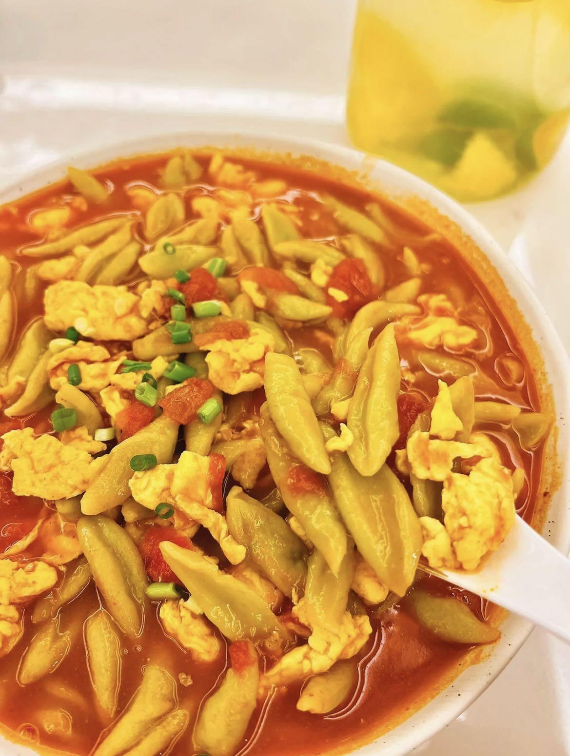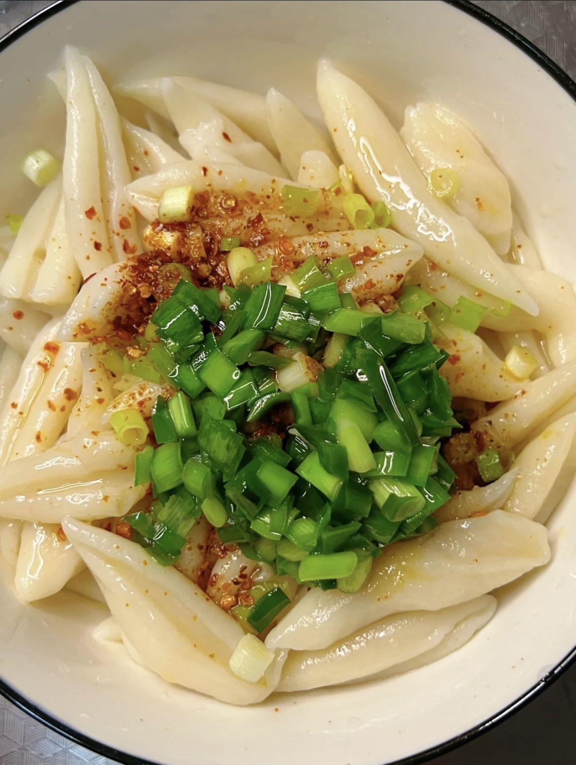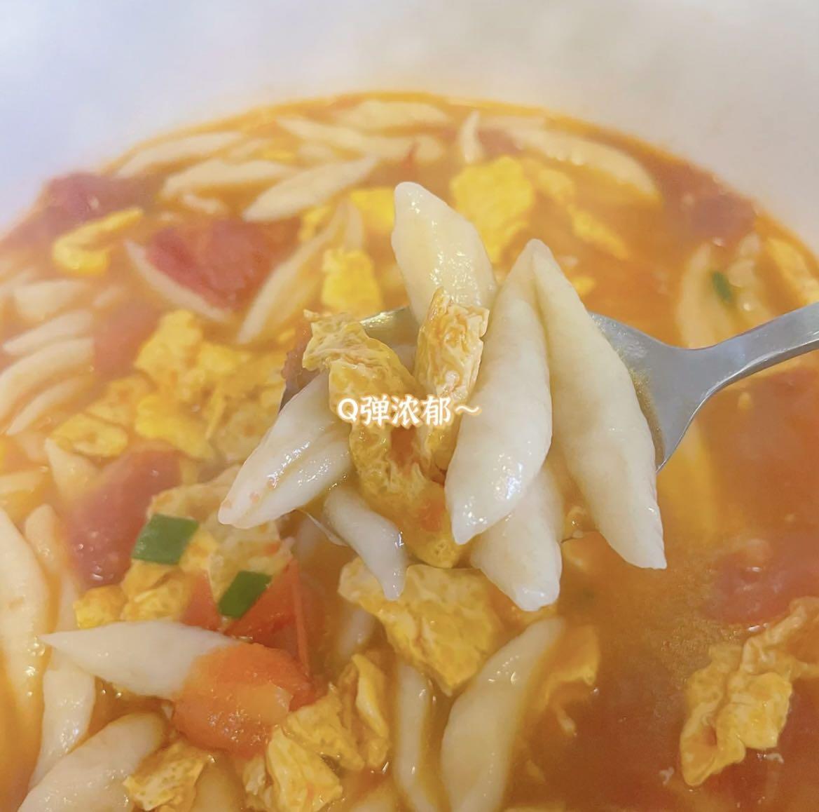 面条出锅,没想到味道筋道滑利,口感一点也不逊色日常的面条,剪刀面因此而成。