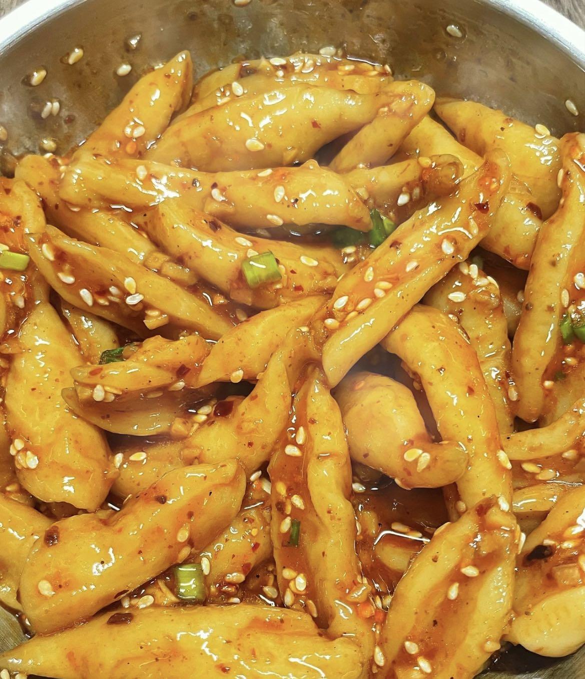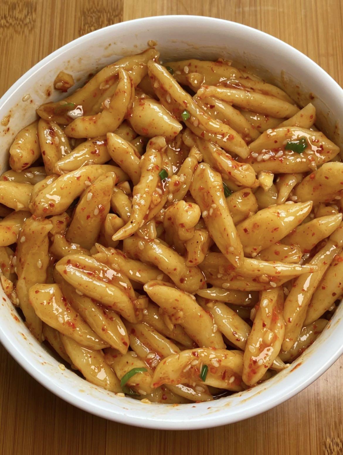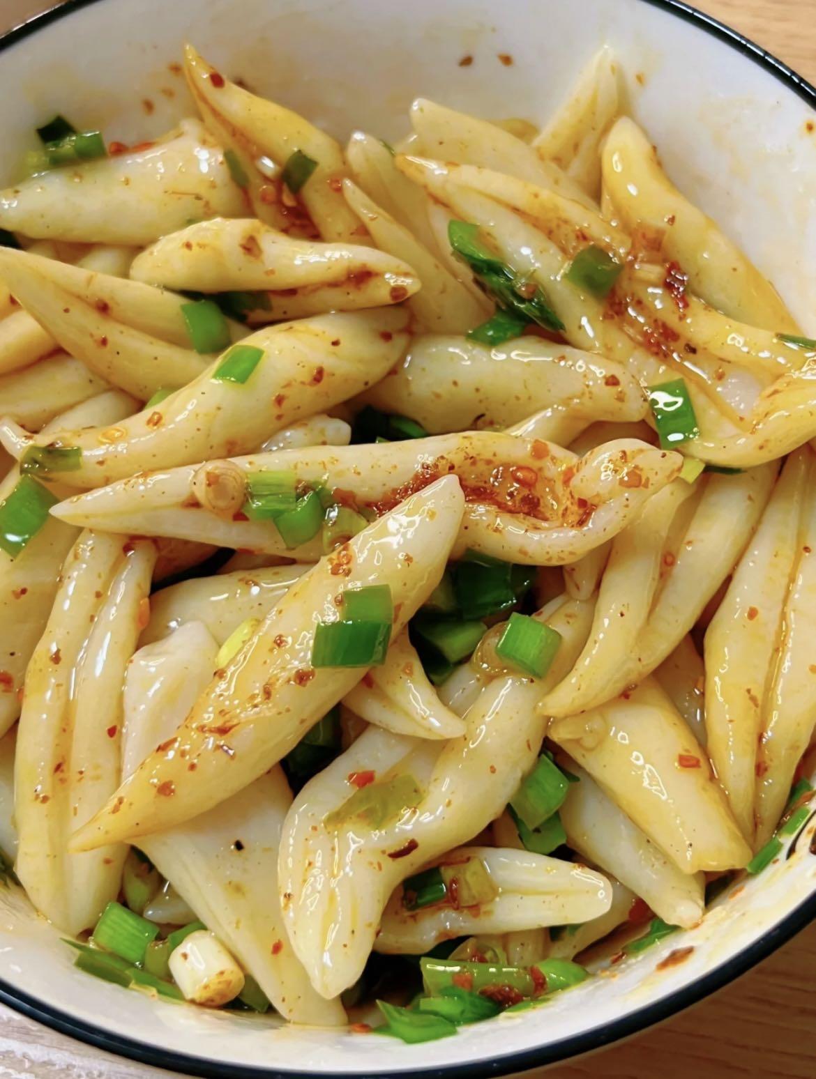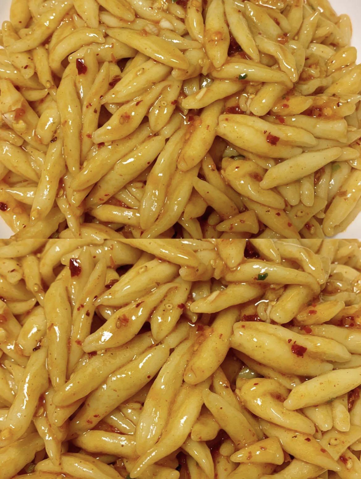 面条出锅,没想到味道筋道滑利,口感一点也不逊色日常的面条,剪刀面因此而成。