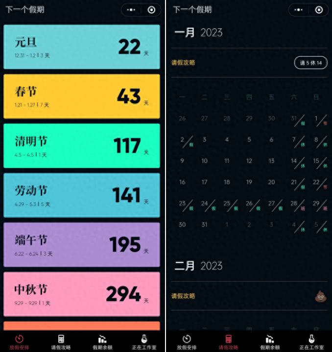 想知道下一个假期是什么时候?用它就可以看到最近的假期、假期有几天,还有请假攻略,让你的小长假变长假!