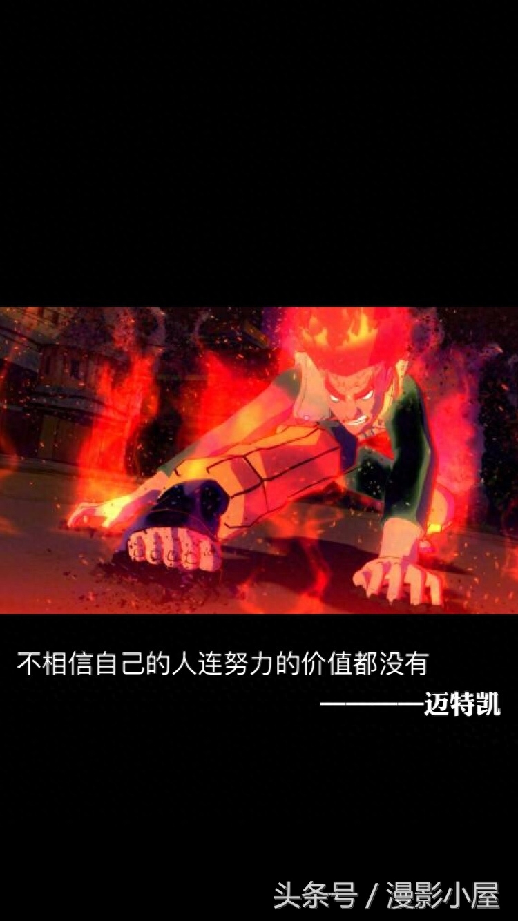 虽然迈特凯看上去永远都是活在自己的世界当中,但是,他绝对是火影中最让人敬佩的人物之一,没有天赋平凡到极致、受尽嘲笑却始终万年如一日去坚持的那种精神,在斑爷大声的宣告着他无与伦比的成就时感动着所有人。看到这里,你还有什么资格不努力呢?