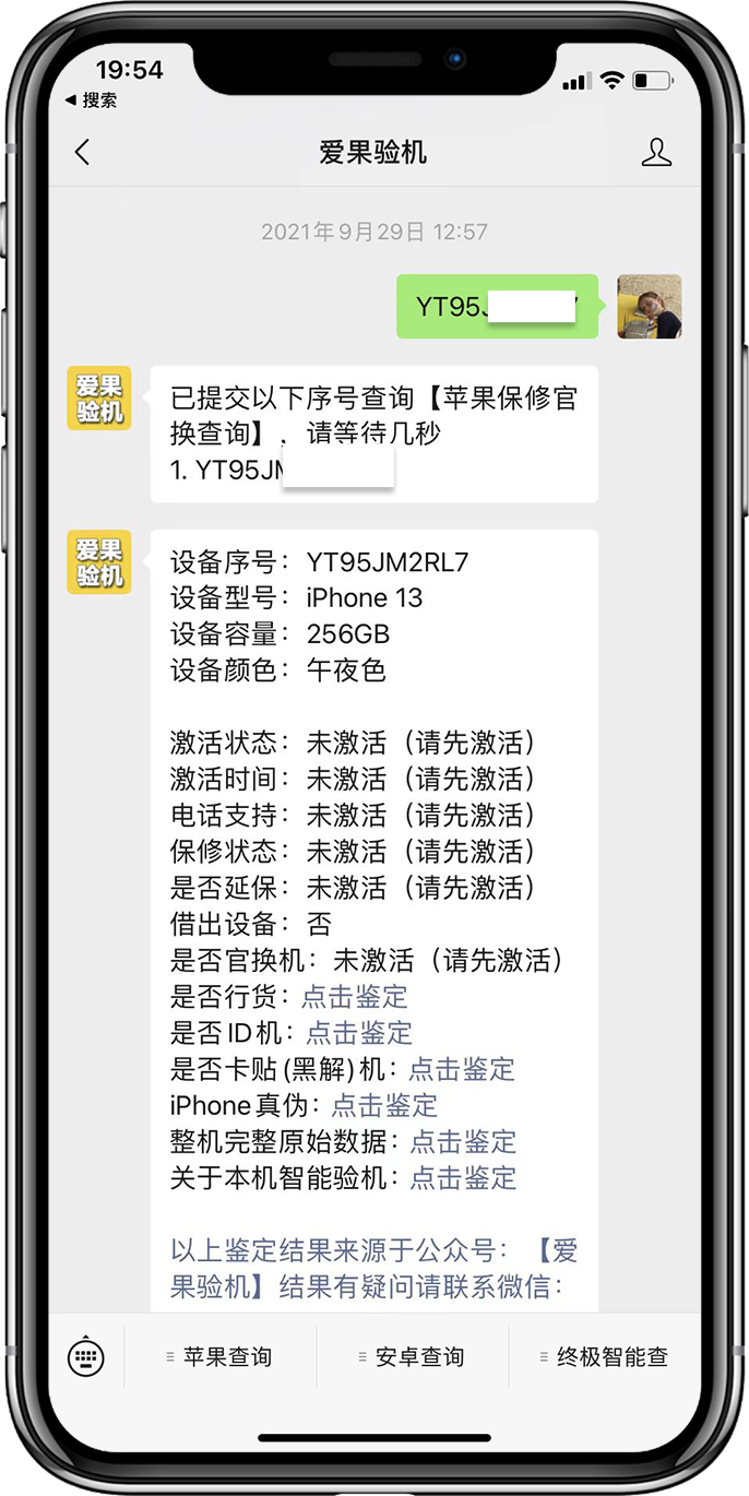 如果手机是全新未激活的,那就查询序列号的结果就会显示“未激活,请先激活”。