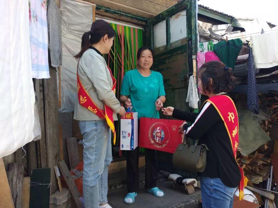 9月11日上午,社区妇联主席带领巾帼志愿者一行先后走访慰问了独居老人和贫困妇女。为她们送去了月饼、牛奶等慰问品,并向她们致以节日问候及美好的祝愿。