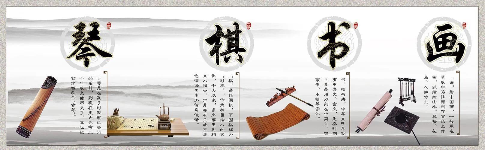 琴、棋、书、画并称中国四大传统艺术形式,成为一种具有丰富内涵的文化形态。琴棋书画,又被称为人生四韵,琴居其首。这种文化在中华历史上源远流长,并逐渐成为文人墨客必备的修养和素质。