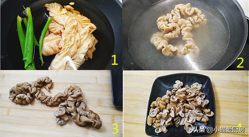 (2)肥肠里边的油和淋巴要清除掉,但是肥肠的肠油不要弄得太干净,要留一点,这样做出的肥肠才香,而且肥而不腻。
