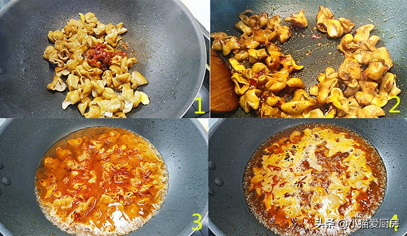 (3)肥肠炒完一定要添加热水,凉水会改变肥肠的口感,让肥肠变得又绵又紧。