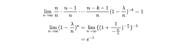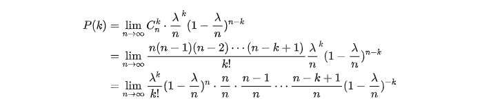前面说了,为了满足二项分布,我们需要让单位时间尽量小,防止会有同一时刻掉下两个栗子的情况发生。所以这个n应该越大越好,我们可以用上之前学过的极限,让n趋向于无穷,所以这个问题就变成了一个求极限的问题。