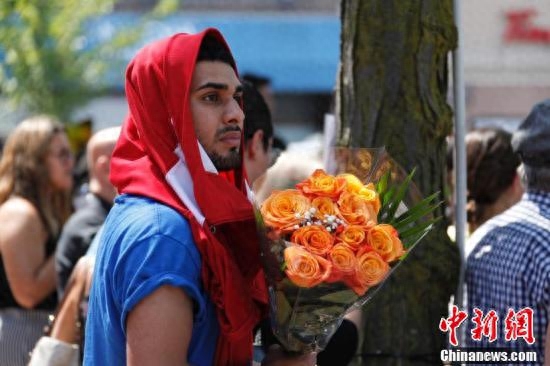 加拿大多伦多民众来到发生“7·22”恶性枪击案的街区,追思遇难者。