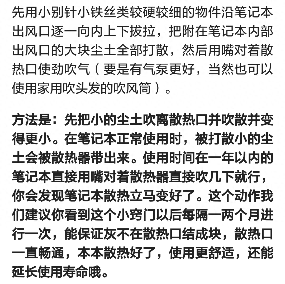 注:以上说的方法只是针对喜欢折腾人去折腾,能够请专业人员或送去维修点除尘是最好不过了。
